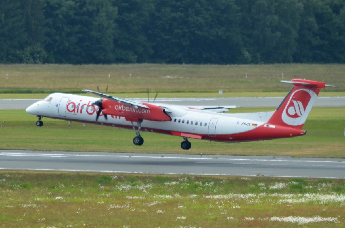 D-ABQE Air Berlin De Havilland Canada DHC-8-402Q Dash 8 bei der Landung am 19.06.2015 in Hamburg