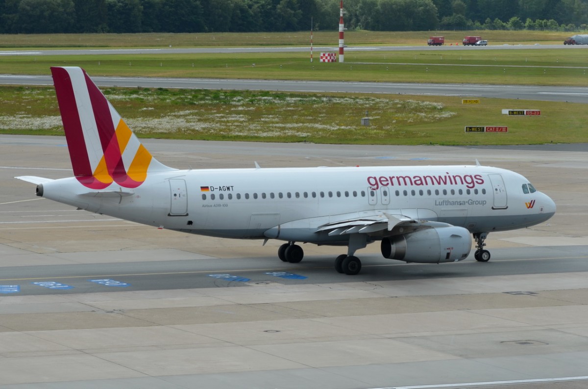 D-AGWT Germanwings Airbus A319-132 zum Start am 19.06.2015 in Hamburg