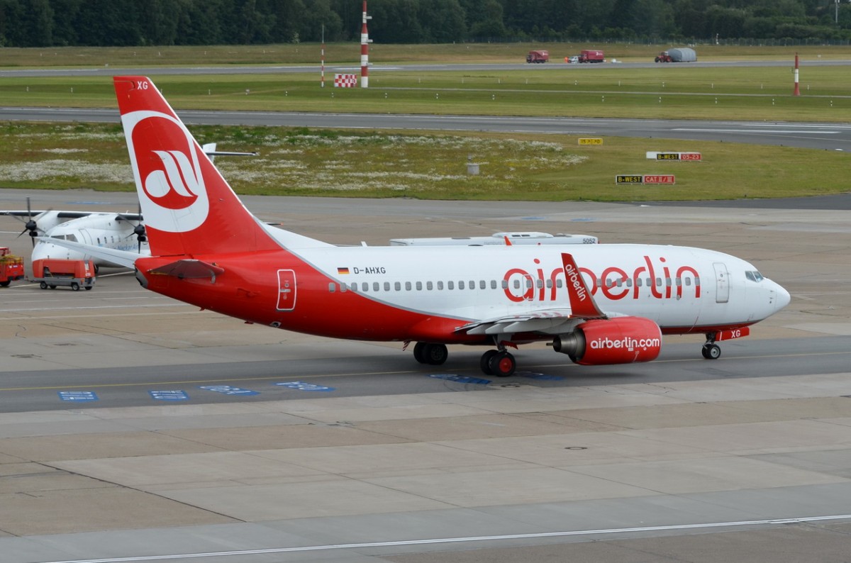 D-AHXG Air Berlin Boeing 737-7K5(WL) in Hamburg am 19.06.2015 zum Start