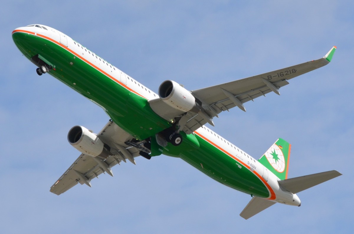 EVA Airways Airbus A321-200 deutsche Reg. D-AZAV , Landeskennung B-16218 , Produktions Nr 6653 , in H.-Finkenwerder gestartet am 17.06.2015