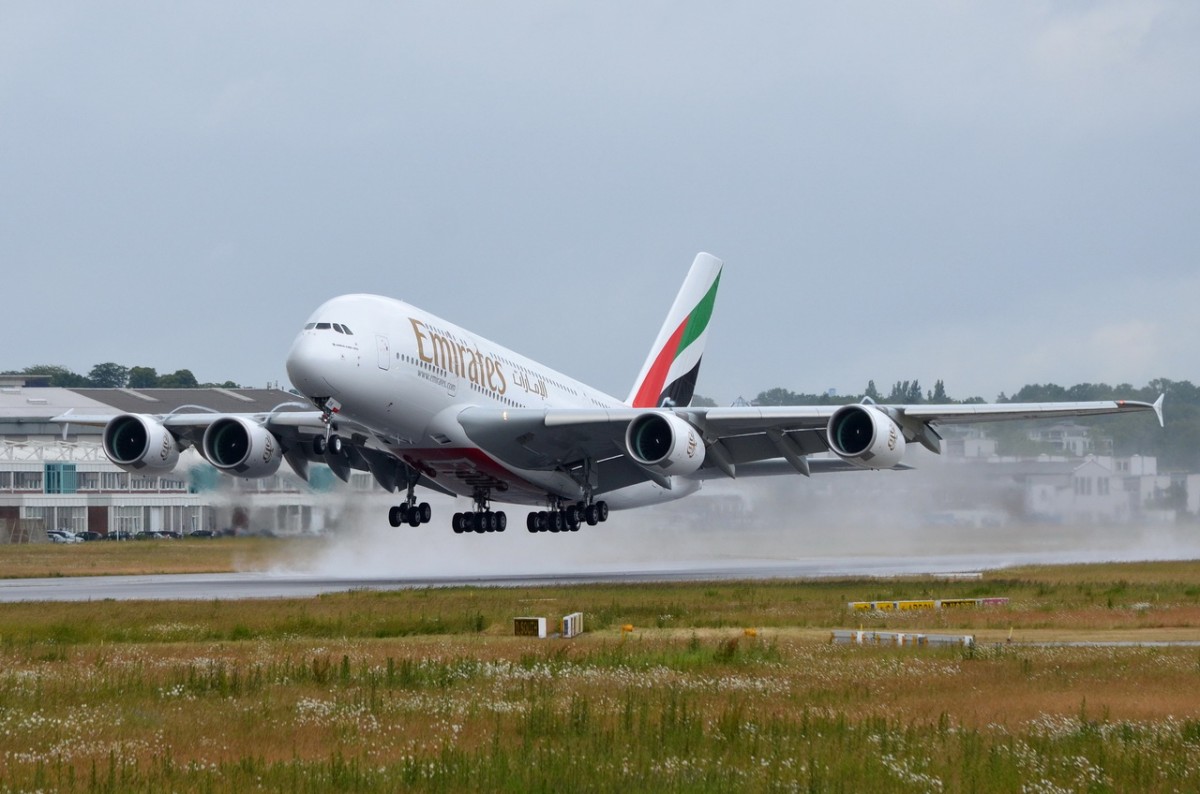 F-WWSU Emirates Airbus A380-800 , Landeskennung A6-EOK , Produktions Nr 0184 , am 18.06.2015 in H.-Finkenwerder gestartet
