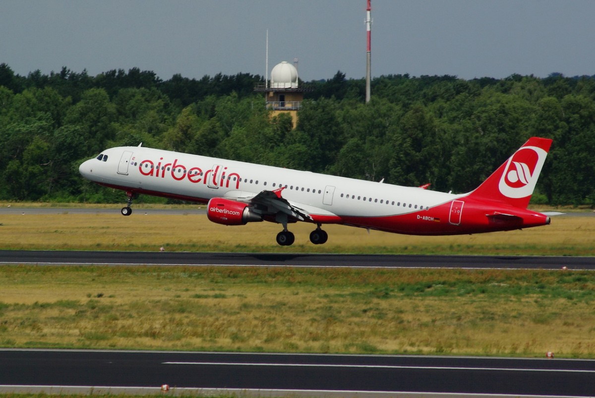 D-ABCH Air Berlin Airbus A321-211 in Tegel beim Start am 08.07.2015