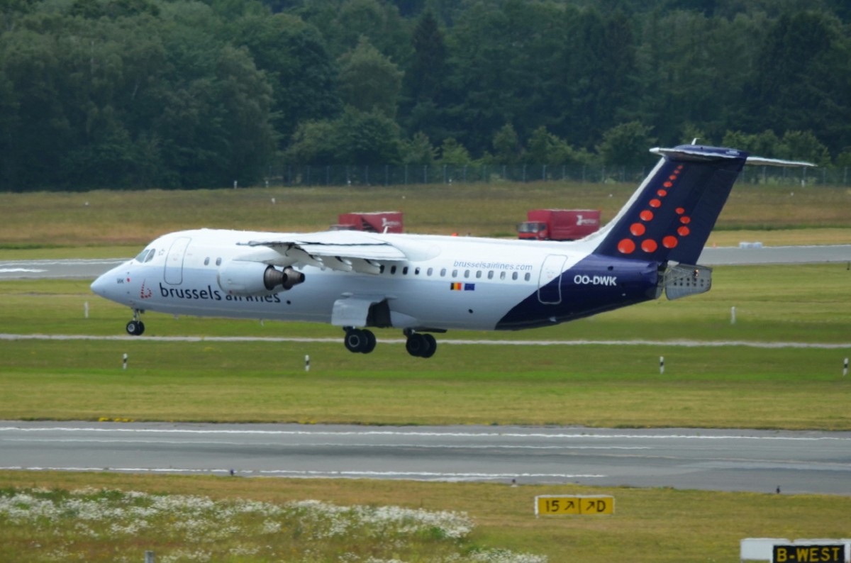 OO-DWK Brussels Airlines British Aerospace Avro RJ100 bei der Landung in Hamburg am 19.06.2015