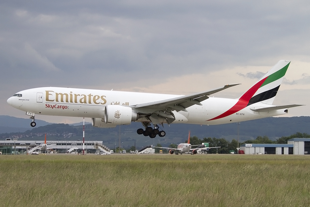 Emirates Sky Cargo, A6-EFG; Boeing. B777-F1H, 30.05.2015, BSL, Basel, Switzerland