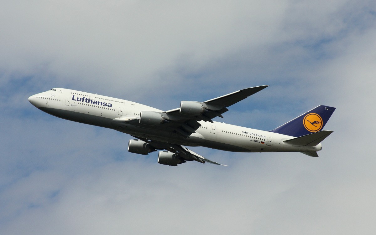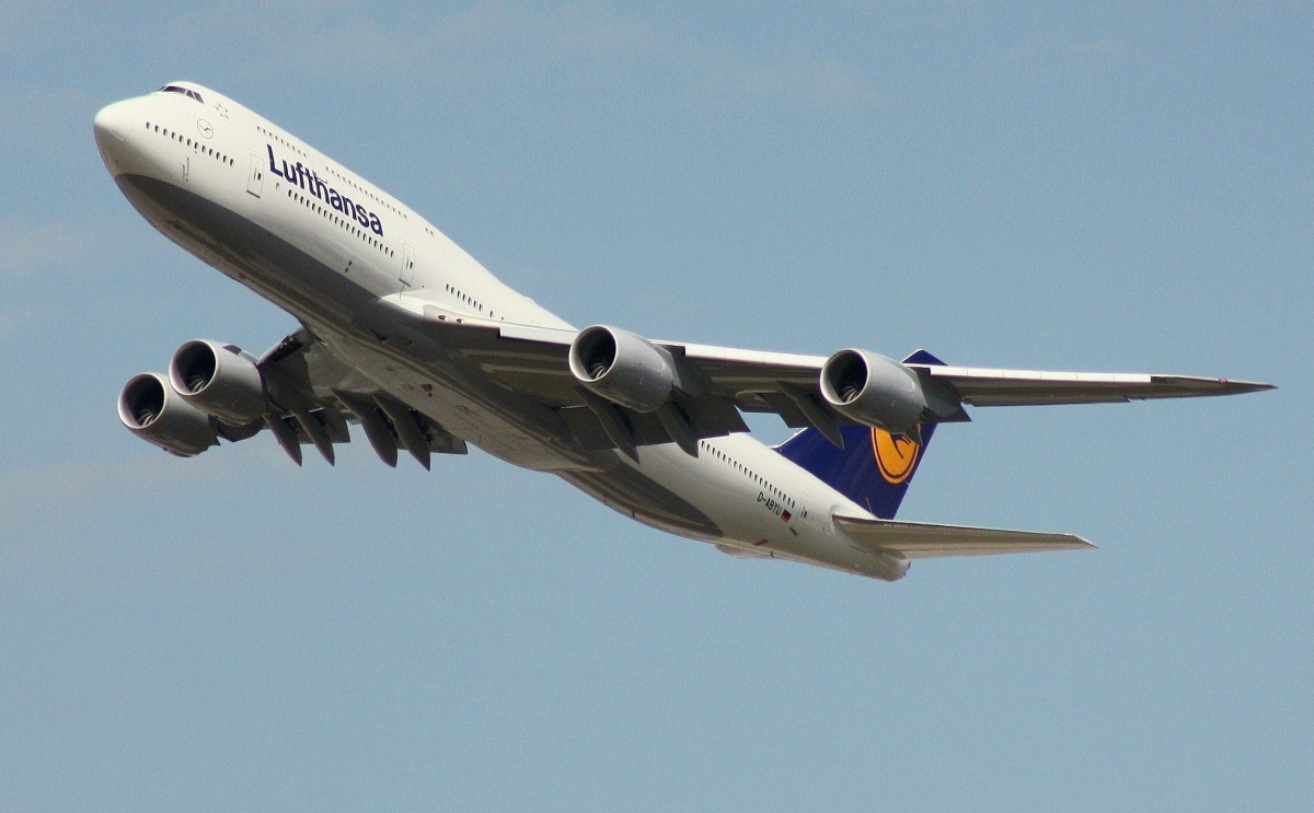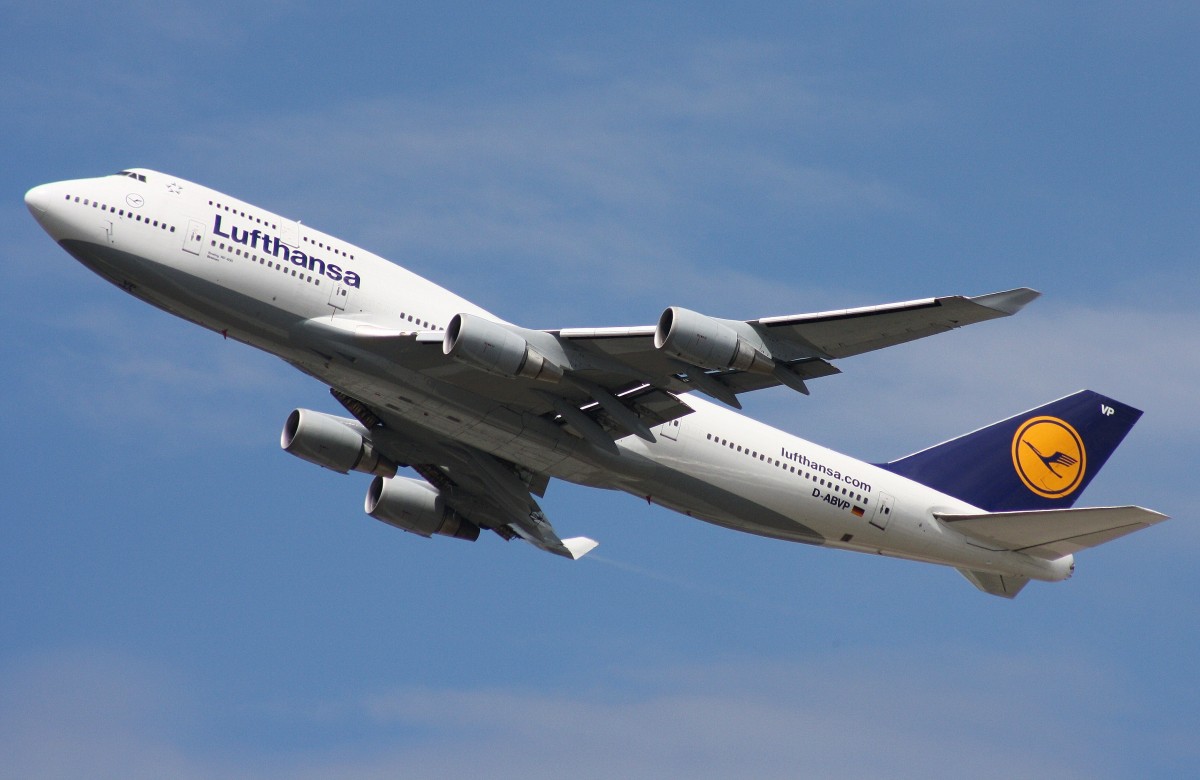 Lufthansa Boeing 747 Siegerflieger FANHANSA D-ABIY startet in Frankfurt am Main Flughafen am 23.05.15 von einen Planespotterpunkt aus fotografiert. Mit dieser Maschiene kamm die DFB Mannschaft 2014 aus Brasilien von der Fußball WM zurück samt WM Pokal
