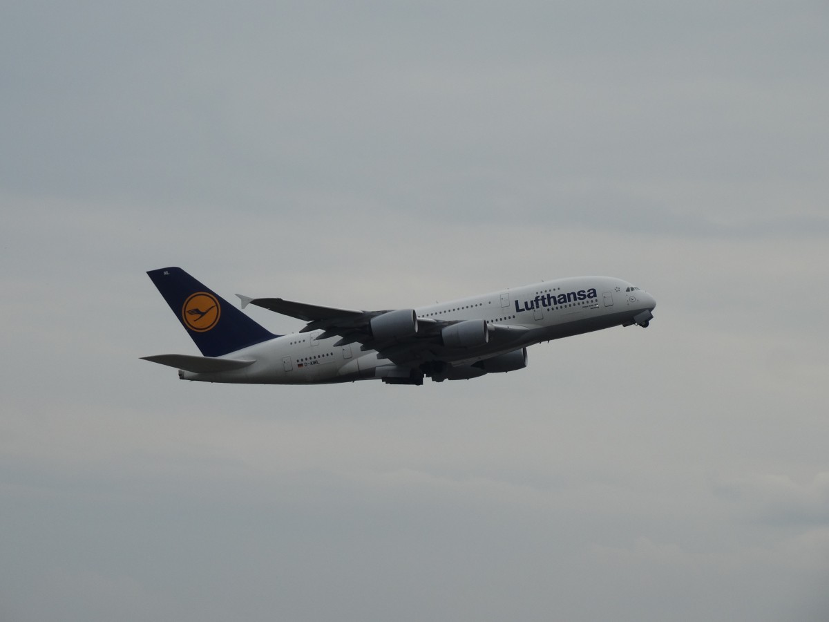 Lufthansa Airbus A380 D-AIML startet in Frankfurt am Main Flughafen am 23.05.15 von einen Planespotterpunkt aus fotografiert