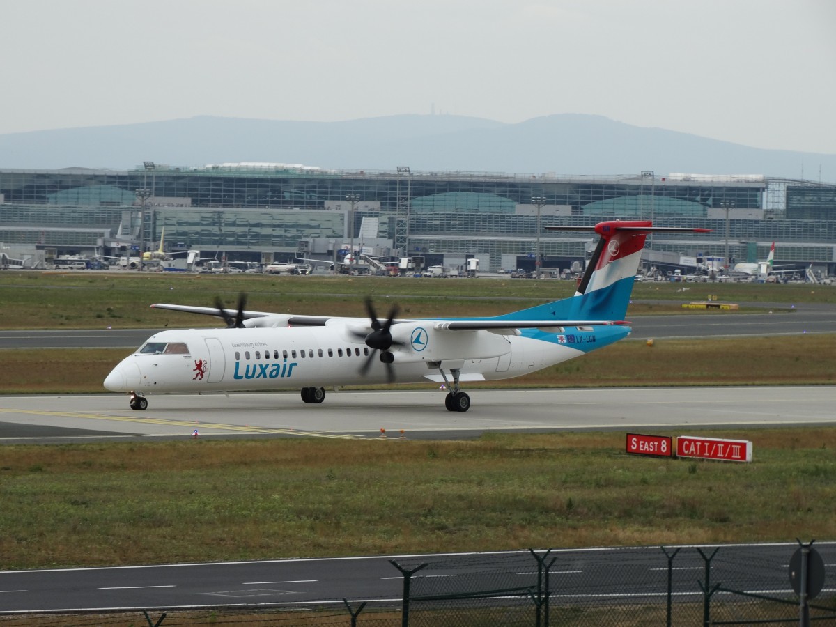 Luxair De Havilland Canada DHC-8 (LX-LGN) in Frankfurt am Main Flughafen am 23.05.15 von einen Planespotterpunkt aus fotografiert