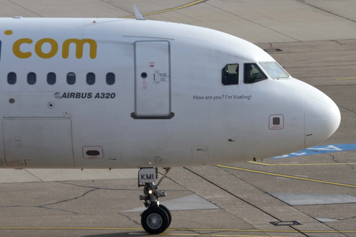 Vueling (VY/VLG), EC-KMI "How are you? I'm Vueling!", Airbus, A 320-216 (Bug/Nose), 03.04.2015, DUS-EDDL, Düsseldorf, Germany