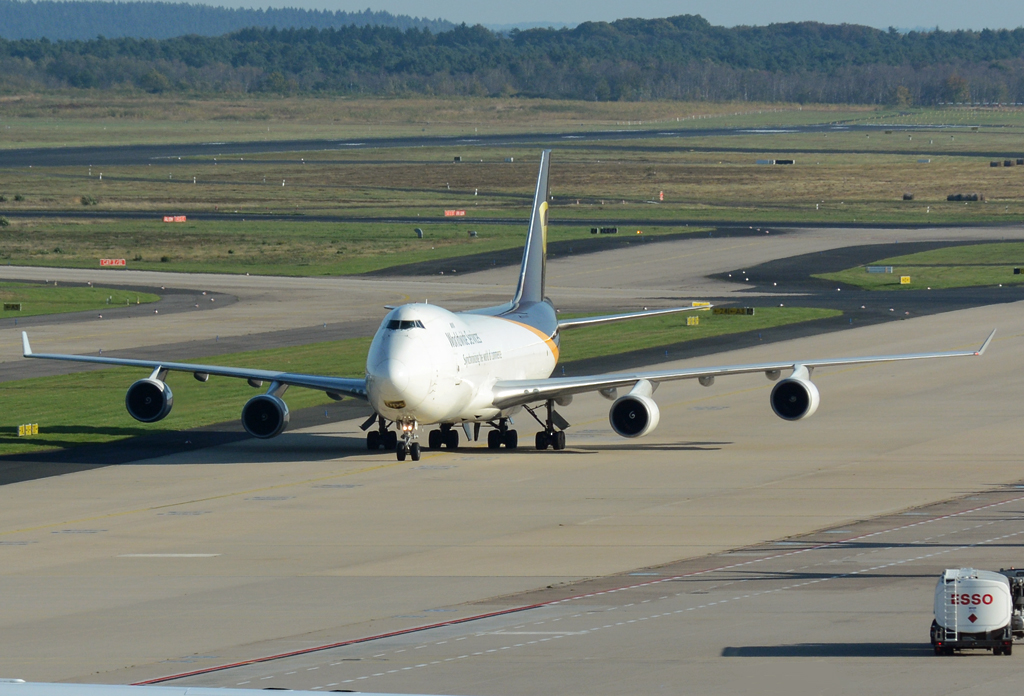 B 747-428F UPS, N580UP, taxy to park position at CGN - 19.10.2014