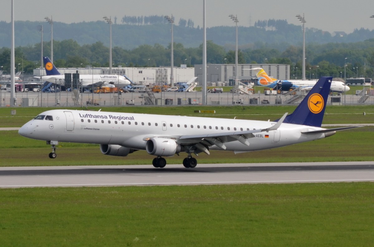 D-AEBL Lufthansa CityLine Embraer ERJ-195LR (ERJ-190-200 LR) bei der Landung in München am 12.05.2015