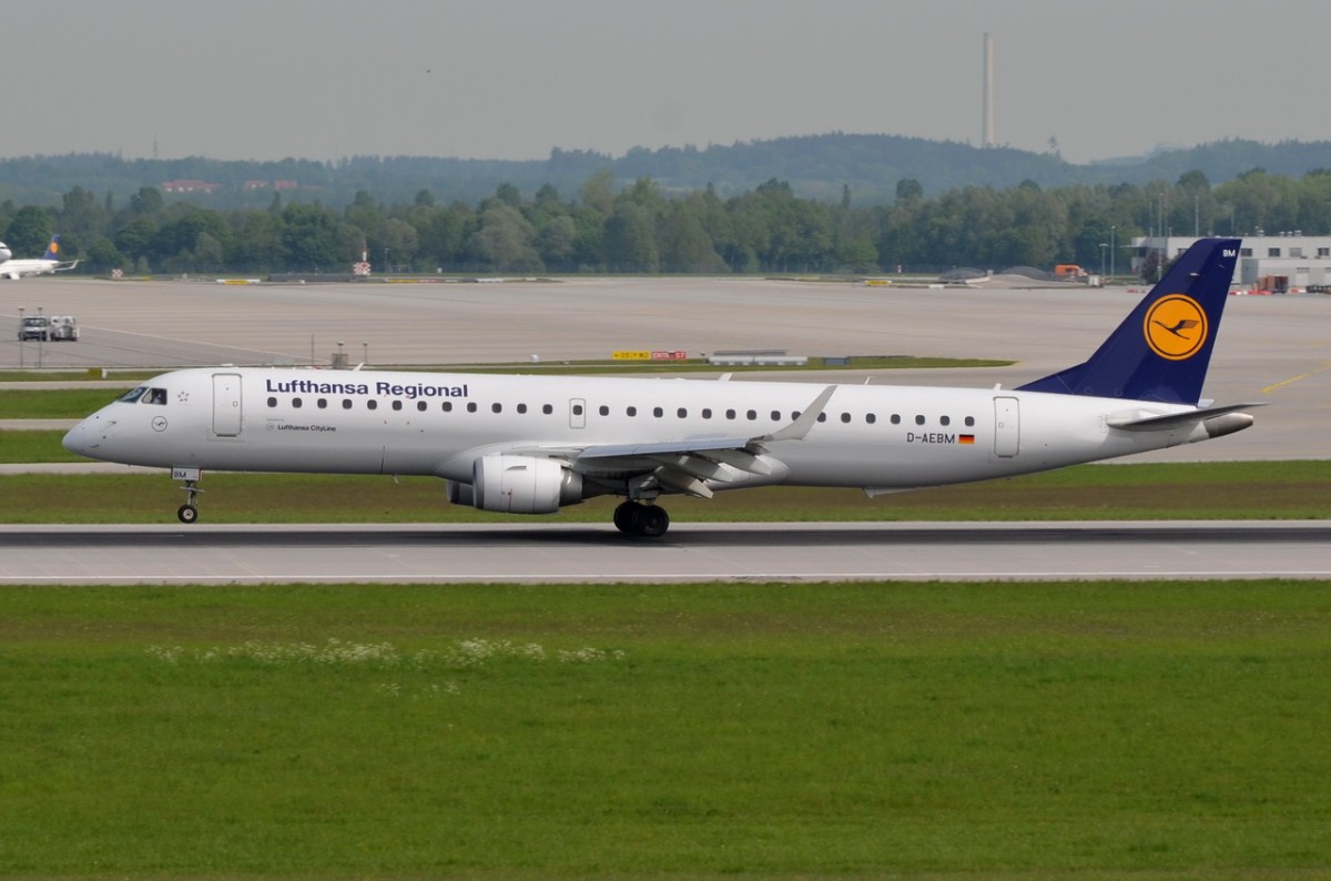 D-AEBM Lufthansa CityLine Embraer ERJ-195LR (ERJ-190-200 LR) in München bei der Landung 12.05.2015