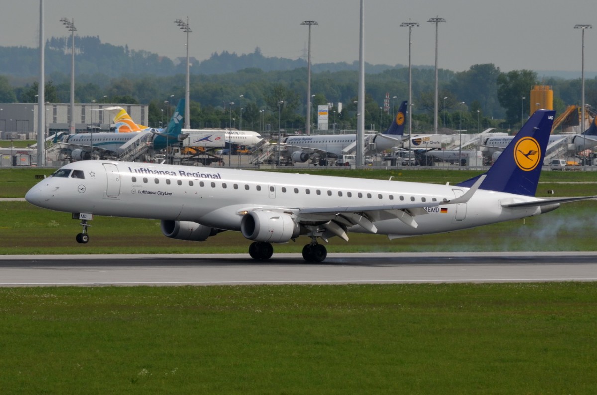 D-AEMD Lufthansa CityLine Embraer ERJ-195LR (ERJ-190-200 LR) bei der Landung in München 12.05.2015