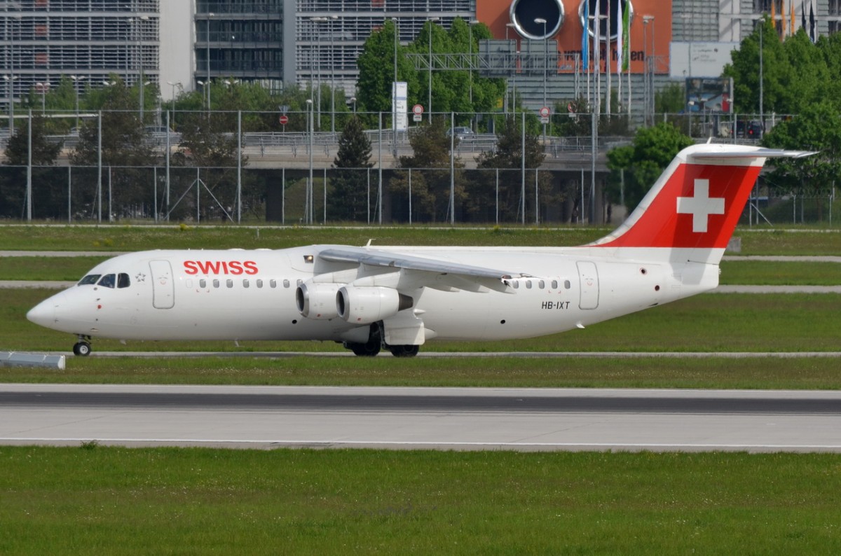 HB-IXT Swiss British Aerospace Avro RJ100 vor dem Start in München 12.05.2015