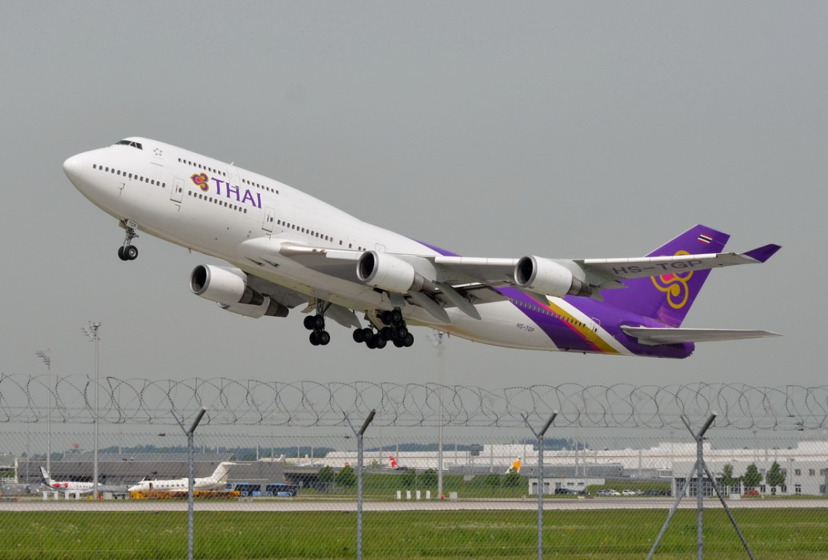 HS-TGP Thai Airways International Boeing 747-4D7 am 12.05.2015 in München gestartet