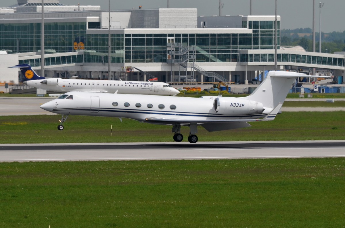 N33XE Private Gulfstream Aerospace G-V-SP Gulfstream G500 bei der Landung in München 12.05.2015