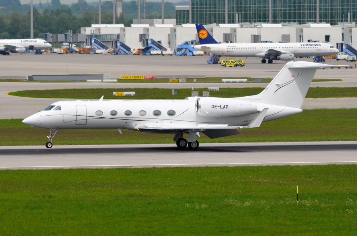 OE-LAR Avcon Jet AG Gulfstream 450 bei der Landung in München am 12.05.2015