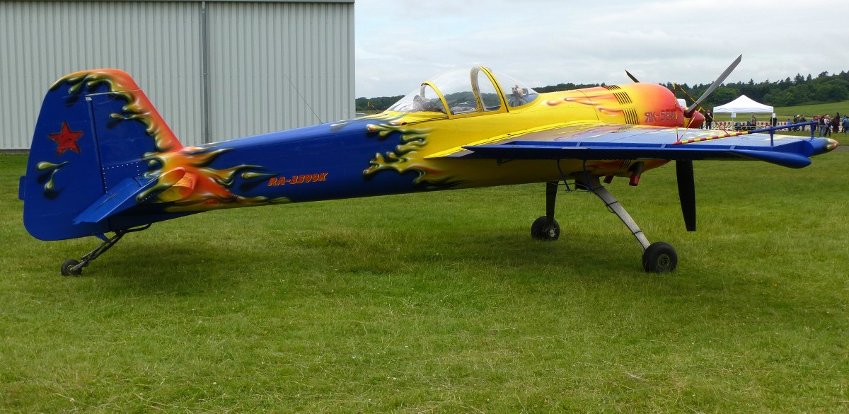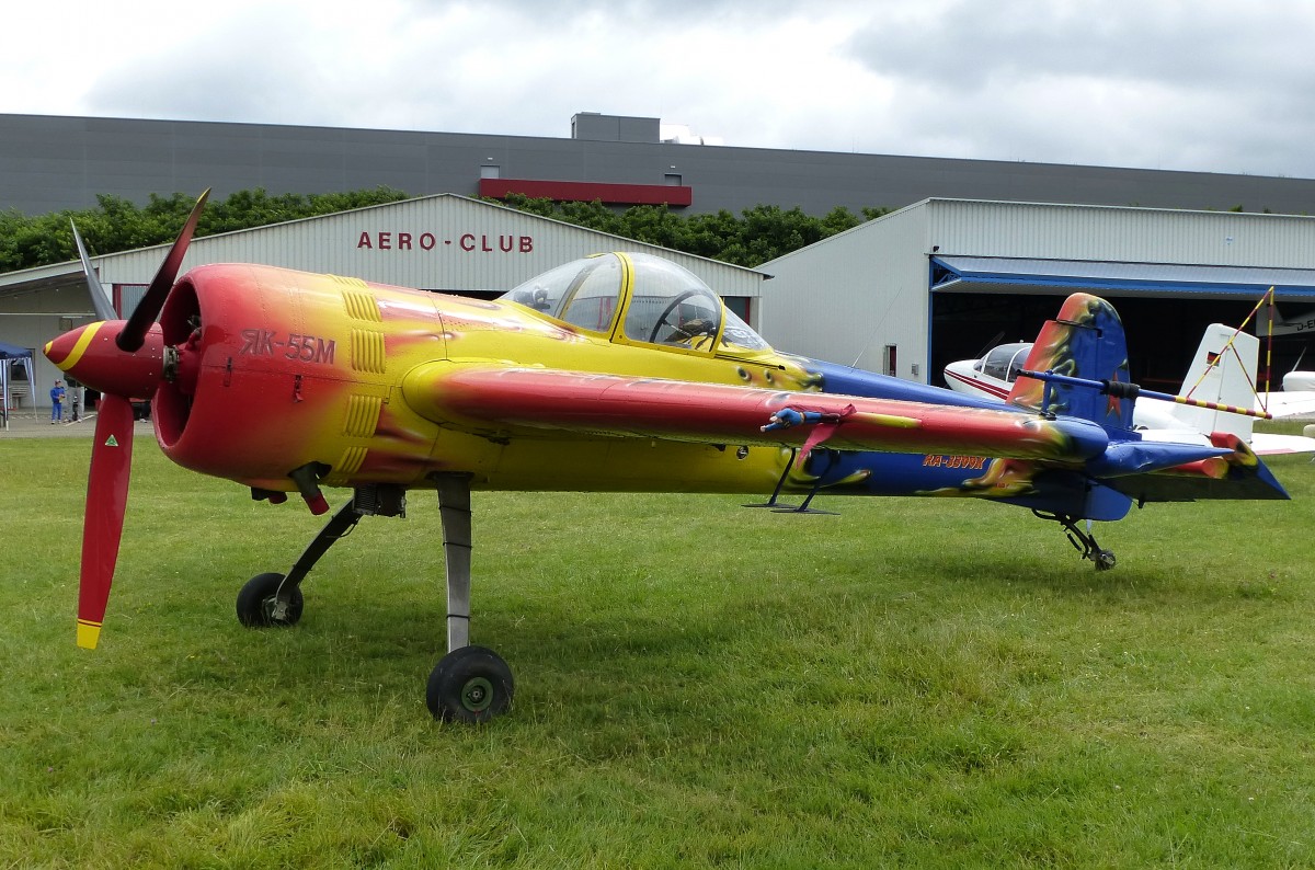 Yak 55M, Kennung RA-3399K, sowjetisches Sportflugzeug, Bauzeit 1982-93, Vmax.450Km/h, Flugplatz Freiburg, Juni 2015