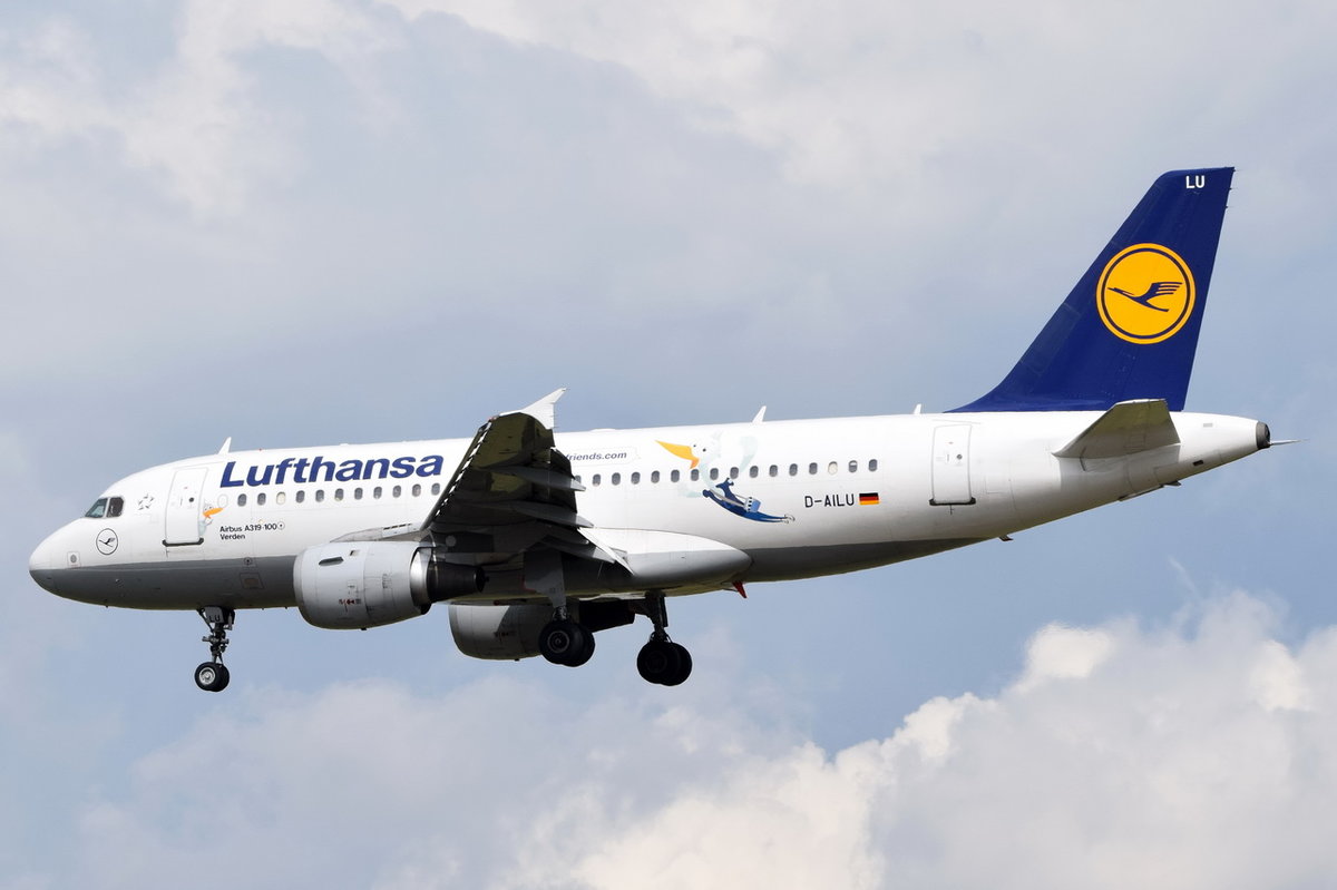 D-AILU Lufthansa Airbus A319-114 "Verdern" in Frankfurt beim Anflug am 06.08.2016