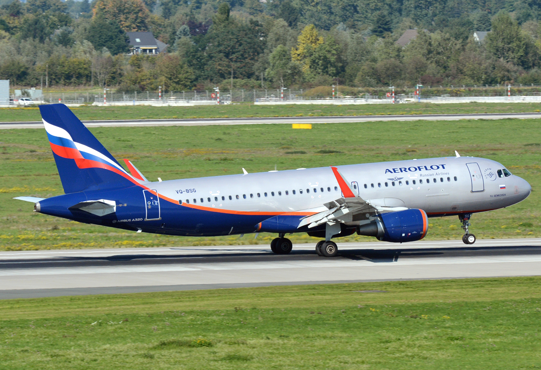 A 320-214 Aeroflot, VQ-BSG, beim Aufsetzen in DUS - 01.10.2015