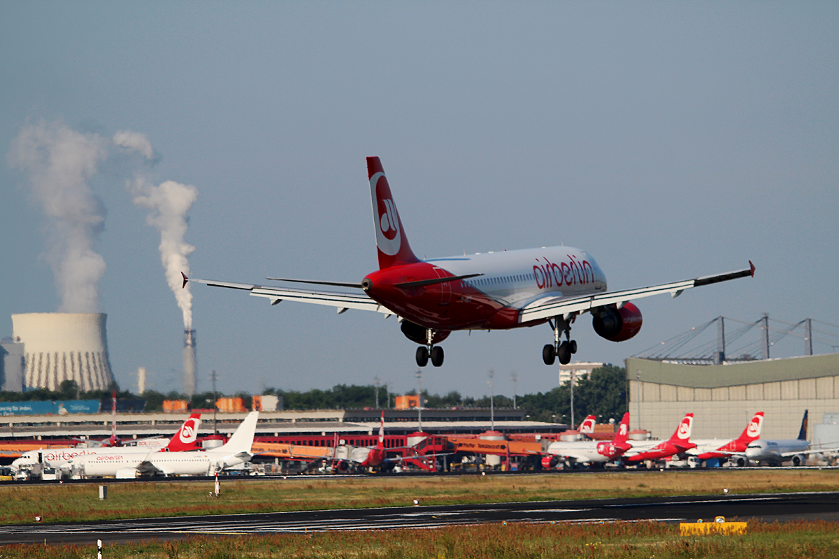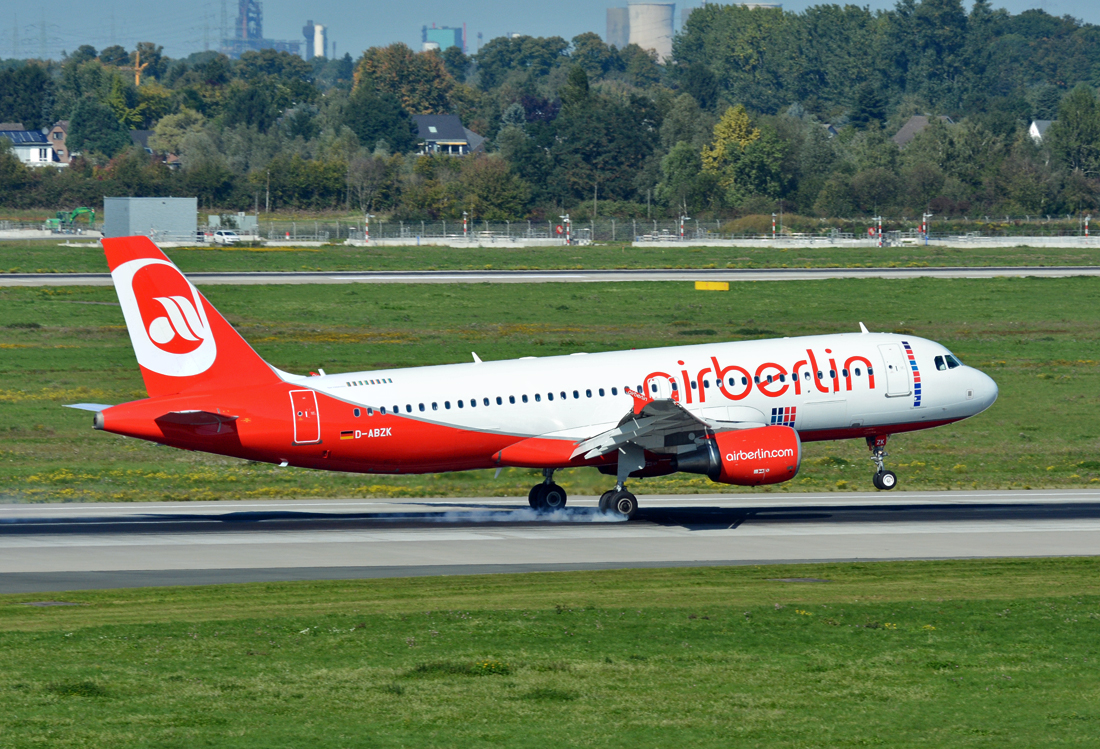 A 320-216 Air Berlin, D-ABZK, bei der Landung in DUS - 01.10.2015
