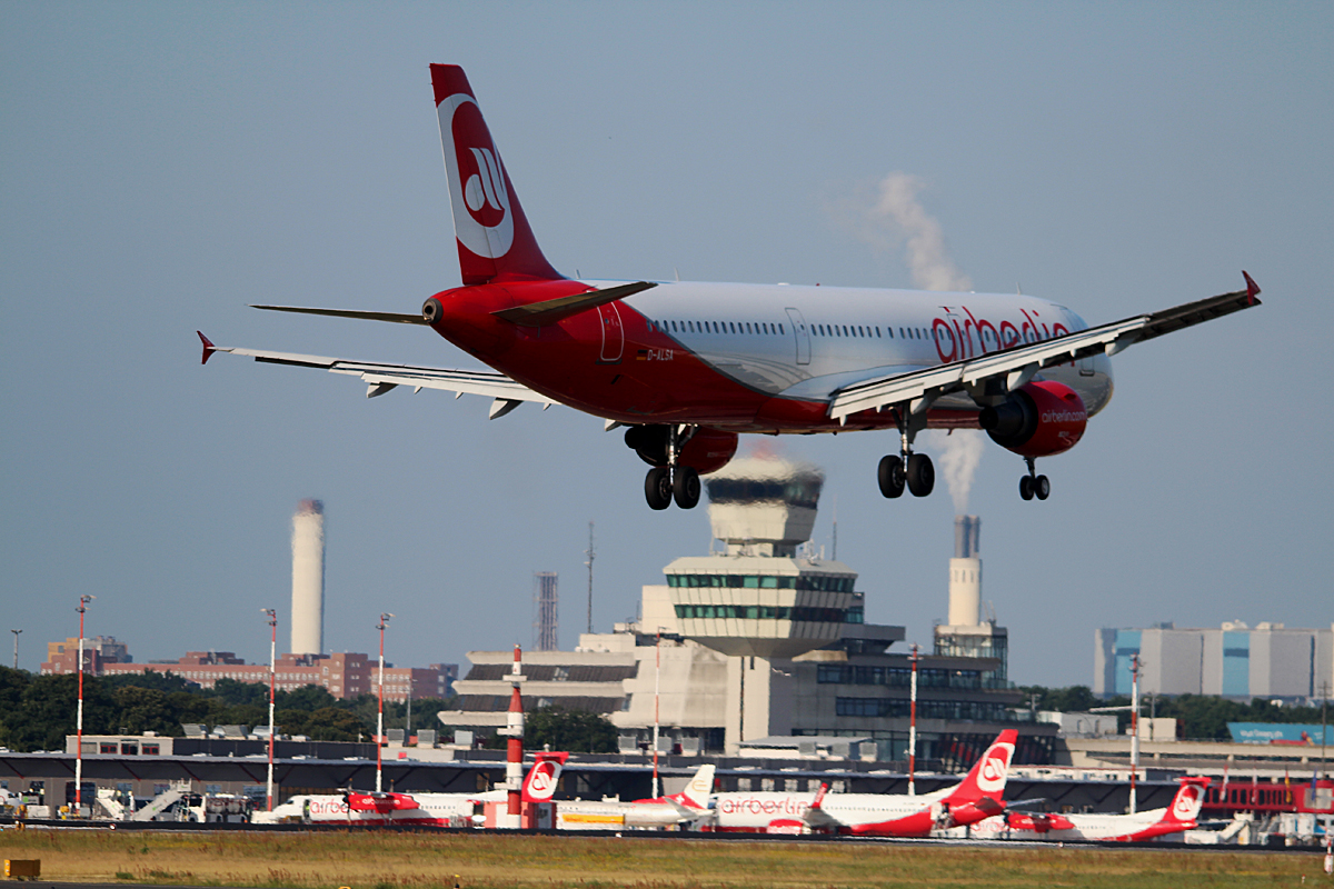Air Berlin B 737-86J D-ABKK bei der Landung in Berlin-Tegel am 11.07.2015