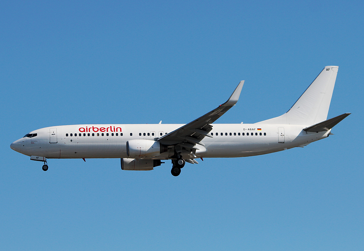 Air Berlin B 737-86J D-ABAF bei der Landung in Berlin-Tegel am 11.07.2015