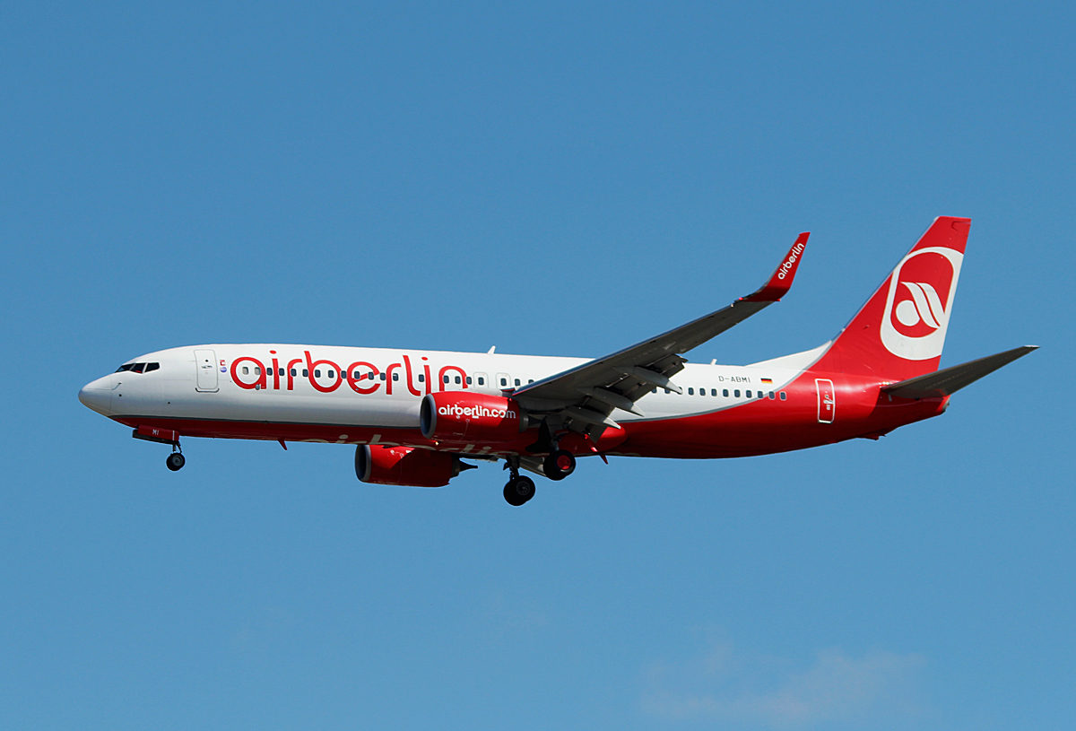 Air Berlin B 737-86J D-ABMI bei der Landung in Berlin-Tegel am 11.07.2015