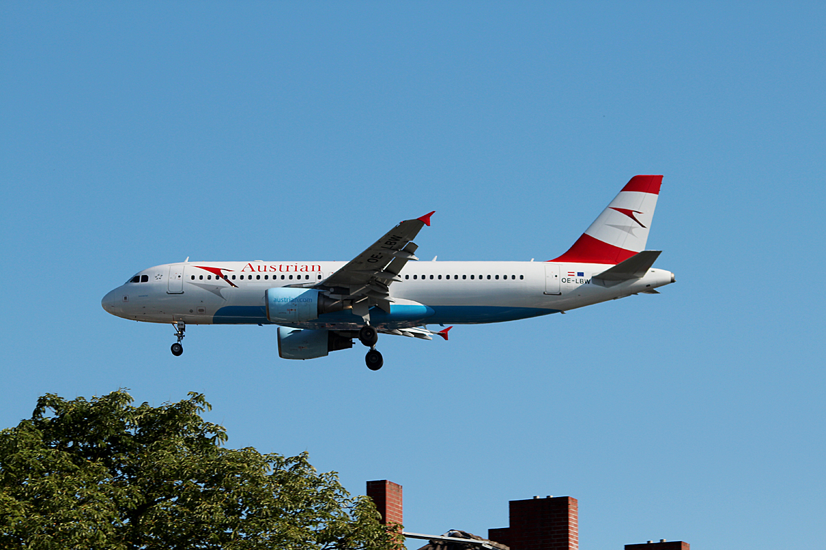 Austrian Airlines A 320-214 OE-LBW bei der Landung in Berlin-Tegel am 11.07.2015