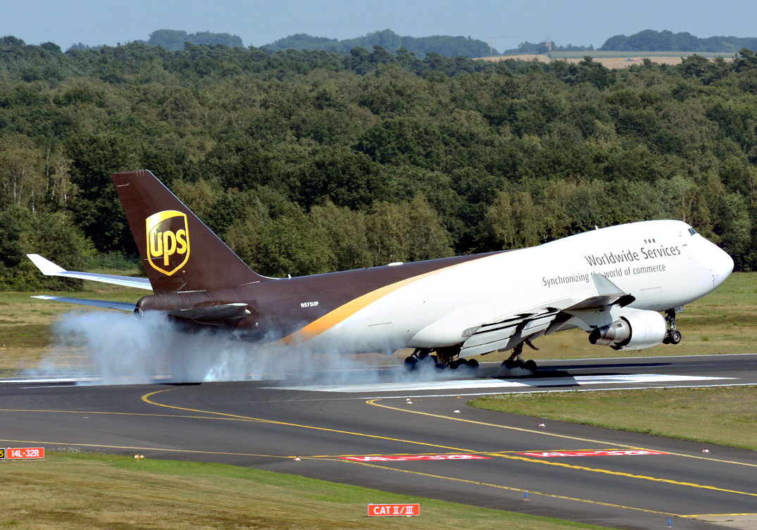 B 747-44AF UPS, N575UP, smoky touchdown at CGN - 02.08.2015