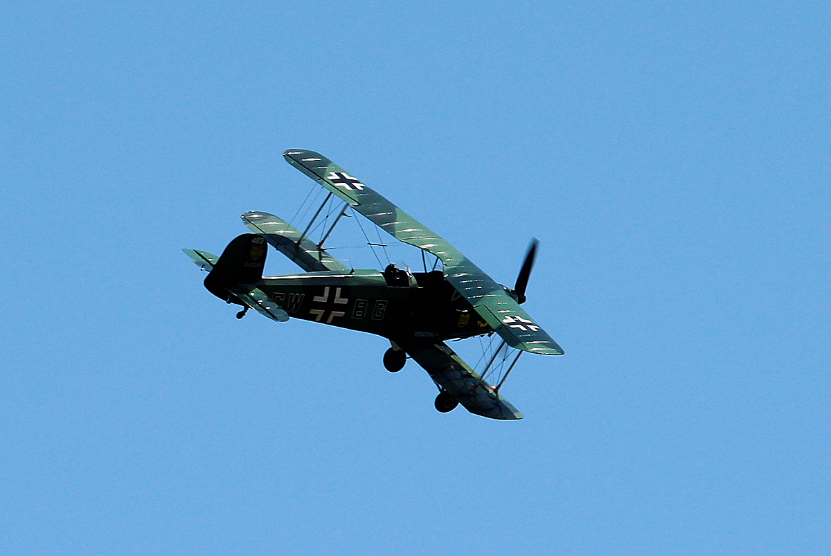 Focke-Wulf FW-44J Stieglitz D-EXWO am 28.06.2015 über dem Flugplatz Strausberg