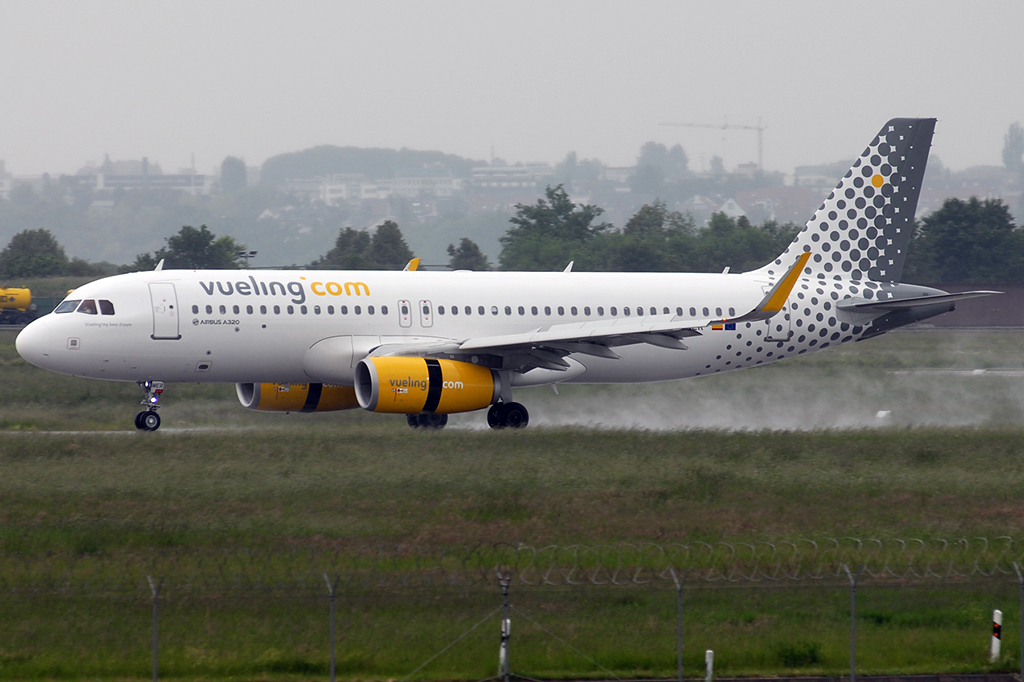 Vueling A 320-232 EC-LUO bei der Landung in Berlin-Tegel am 11.07.2015