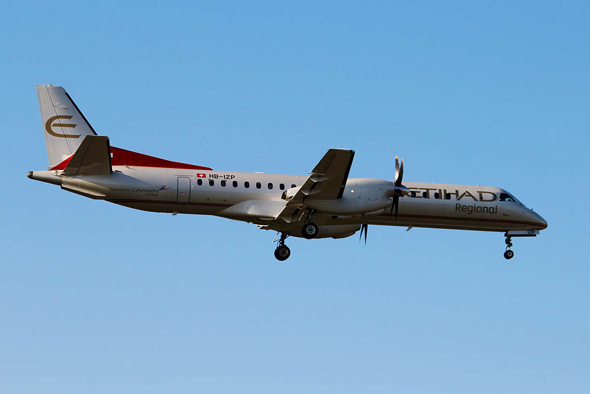 Etihad Regional Saab 2000 HB-IZP bei der Landung in Berlin-Tegel am 11.07.2015