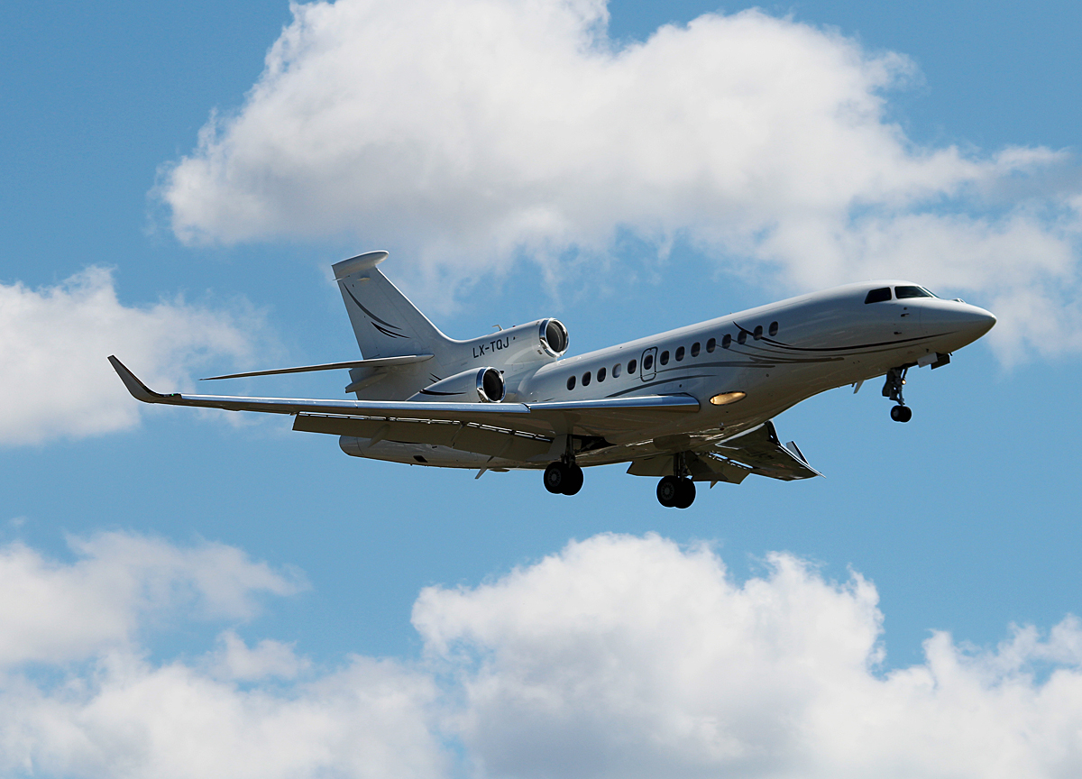Global Jet Luxembourg Dassault Falcon 7X LX-TQJ bei der Landung in Berlin-Tegel am 20.07.2015