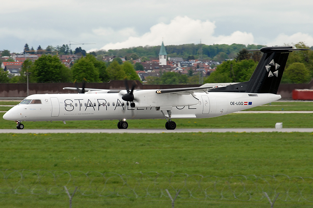 Air Baltic DHC-8-402Q YL-BAY bei der Landung in Berlin-Tegel am 11.07.2015