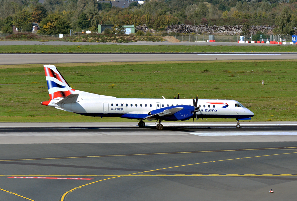 Saab 2000 der British Airways, G-CDEB, startet von DUS - 01.10.2015