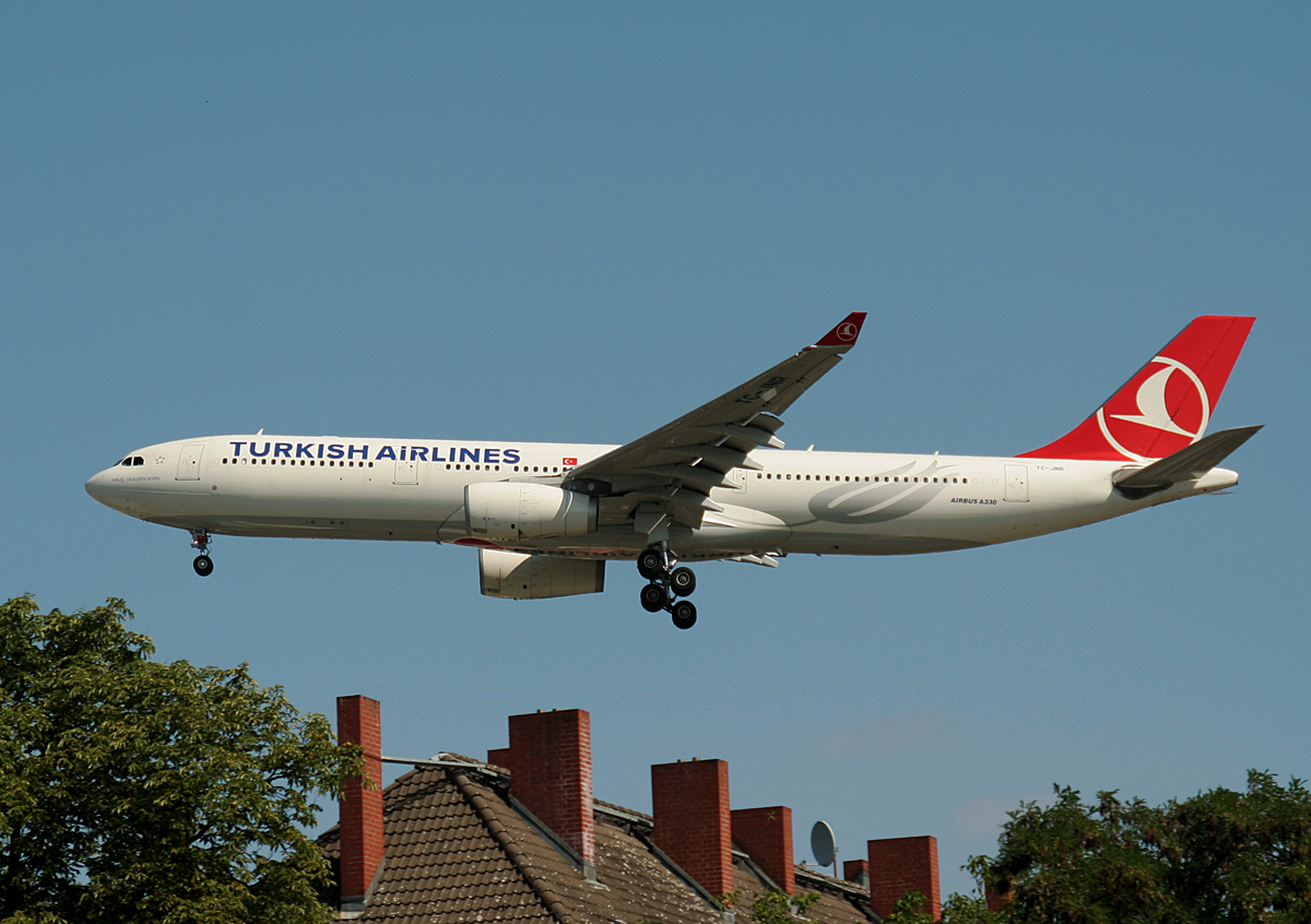 Turkish Airlines A 330-343E TC-JNR bei der Landung in Berlin--Tegel am 11.07.2015