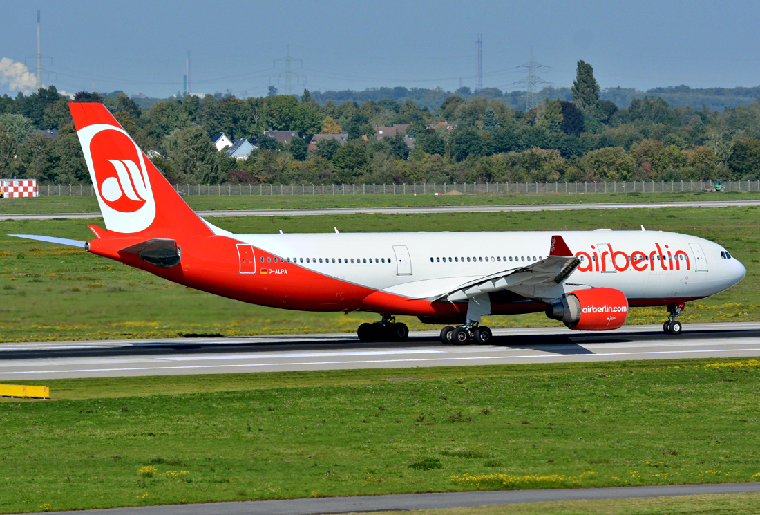 A 330-223 Air Berlin, D-ALPA, beim Start von DUS - 01.10.2015
