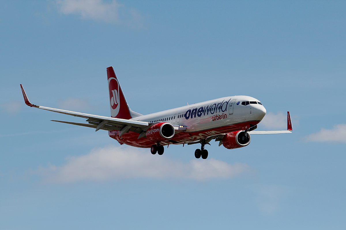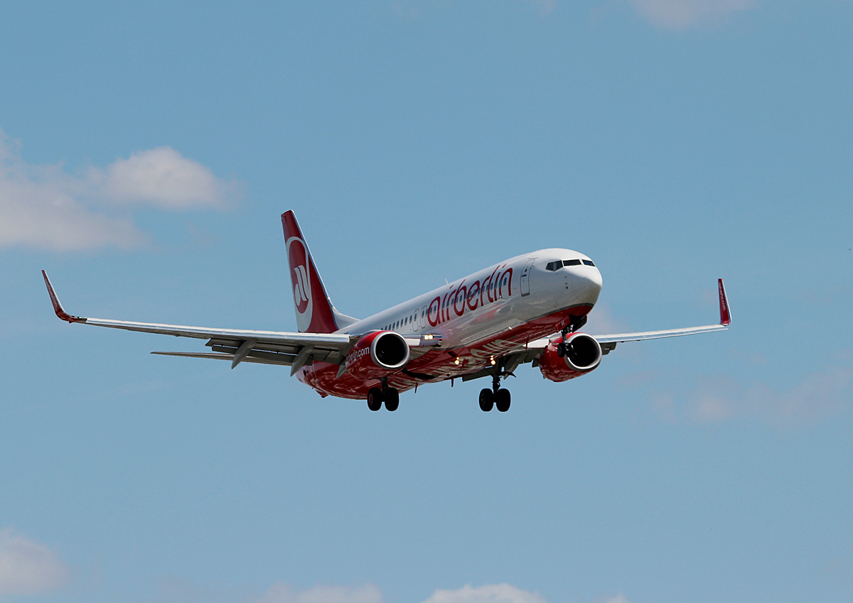 Air Berlin B 737-86J D-ABMK bei der Landung in Berlin-Tegel am 20.07.2015
