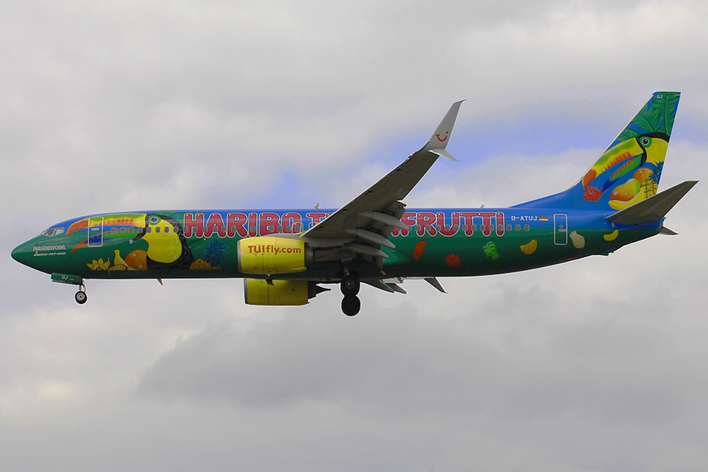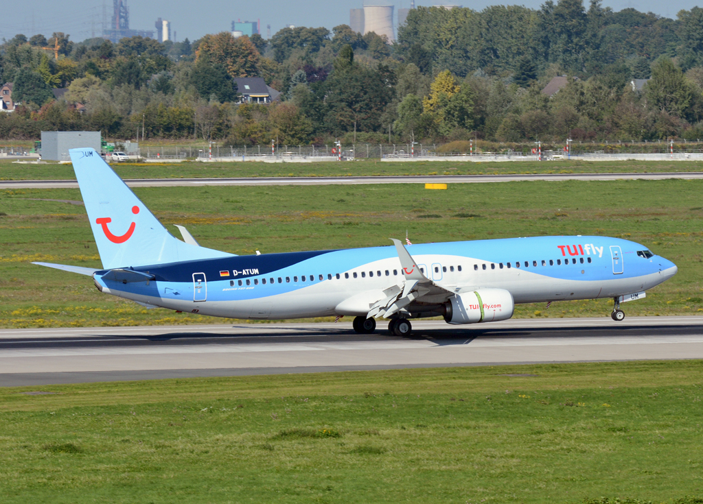 B 737-800 Tuifly, D-ATUM bei der Landung in DUS - 01.10.2015