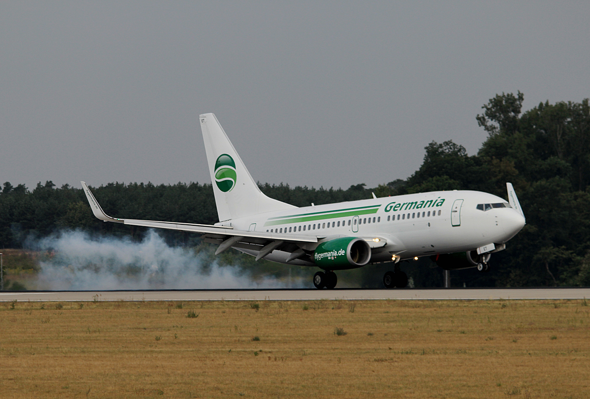 Germania B 737-75B D-AGET bei der Landung in Berlin-Schönefeld(BER) am 23.08.2015