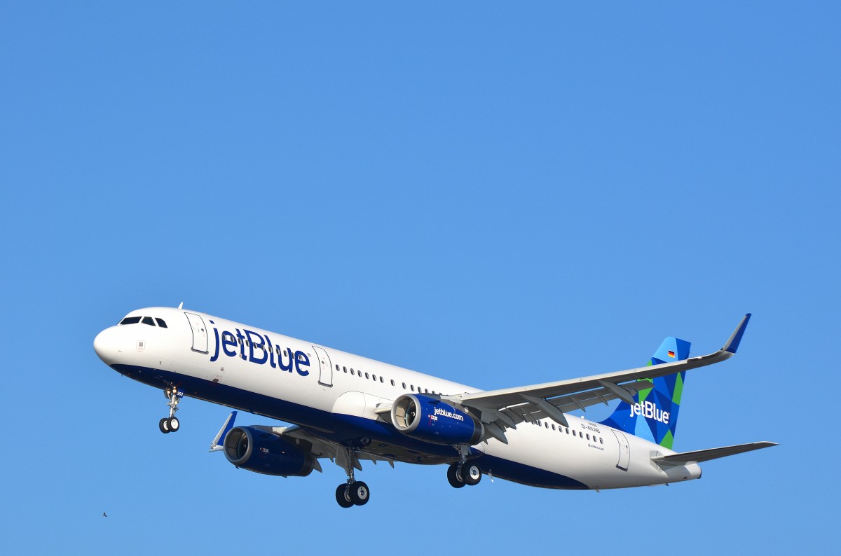 Zurück vom Testflug jetBlue Airbus A321 D-AYAB im Landeanflug auf Hamburg Finkenwerder am 16.02.16