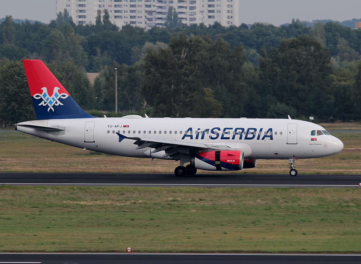 Air Serbia A 319-132 YU-APJ nach der Landung in Berlin-Tegel am 13.09.2015