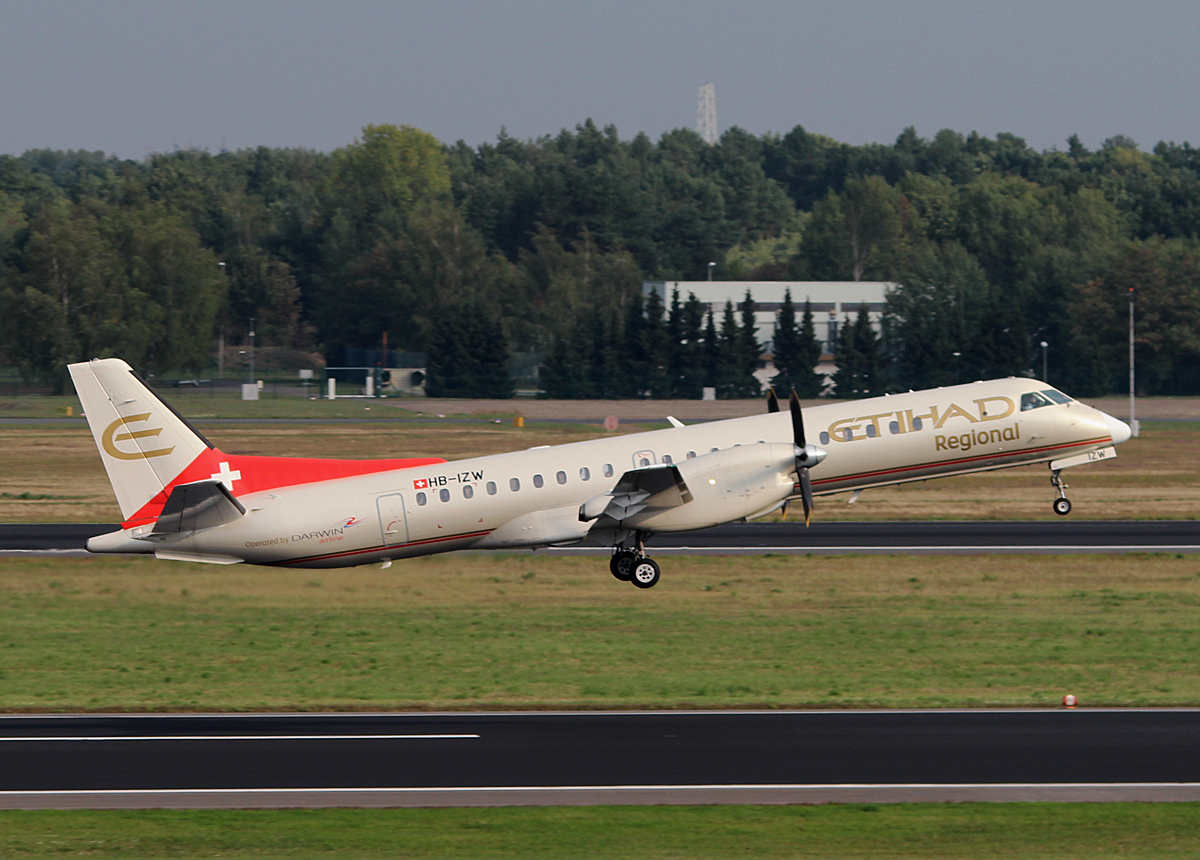 Etihad Regional Saab 2000 HB-IZW beim Start in Berlin-Tegel am 13.09.2015