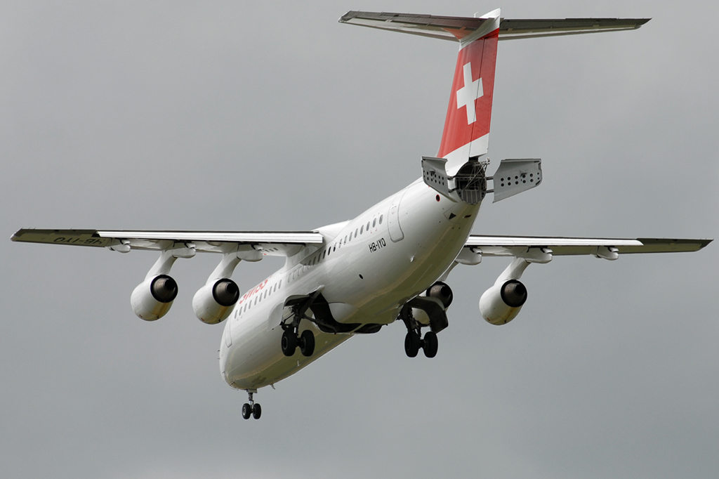 BAe Avro 146-RJ 100, Swiss HB-IYV, short final at DUS - 01.10.2015
