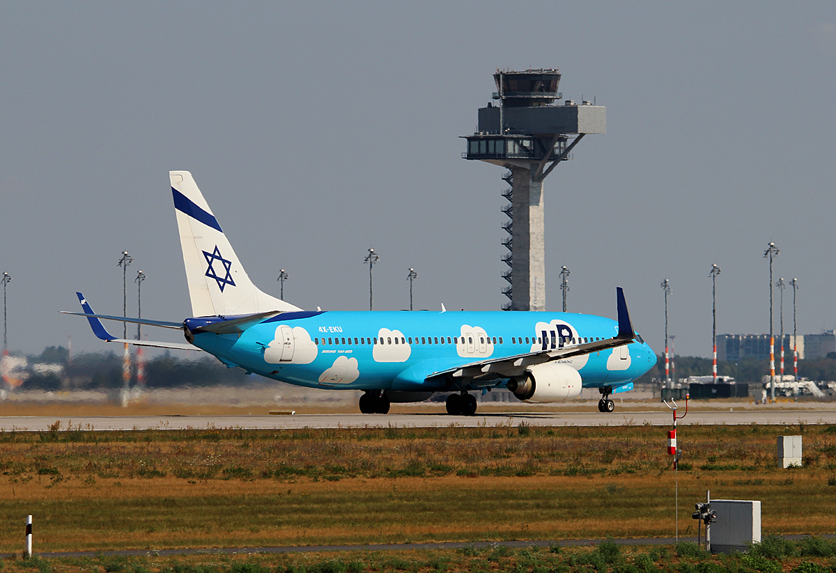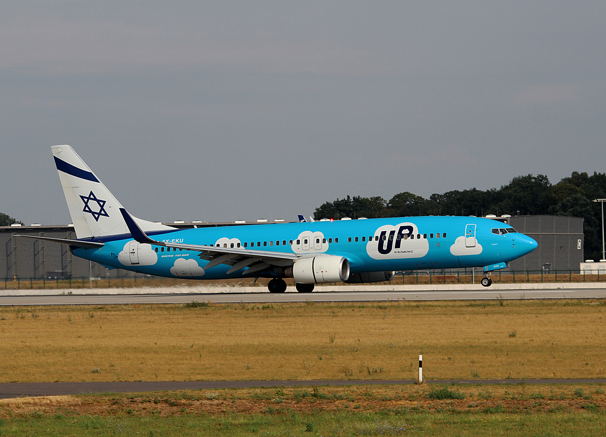 ÜP B 737-8Z9 4X-EKU bei der Landung in Berlin-Schönefeld/BER) am 23.08.2015