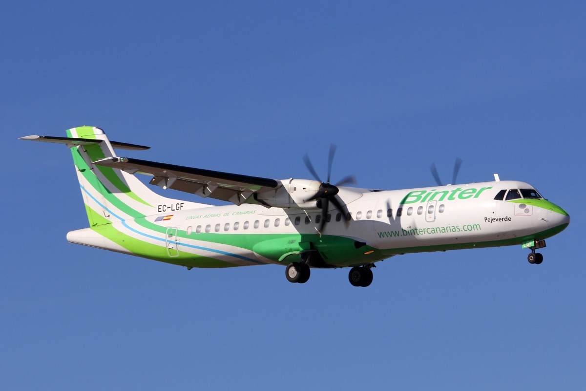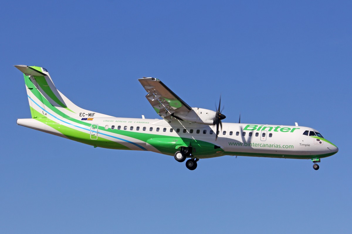 Binter Canarias, EC-LGF, ATR 72-212A, 17.Dezember 2015, ACE Lanzarote, Spain. "Pejeverde"