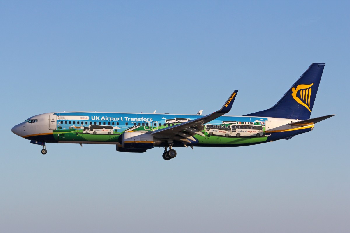 Ryanair, EI-EMK, Boeing B737-8AS (W), 17.Dezember 2015, ACE Lanzarote, Spain. Mit Werbebemahlung UK Airport Transfers.