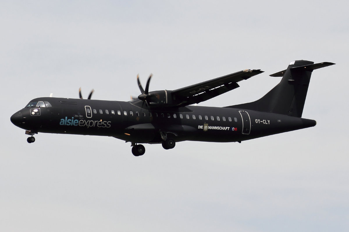 AlsieExpress OY-CLY bei der Landung in Frankfurt mit einem Teil der Nationalmannschaft 8.7.2016