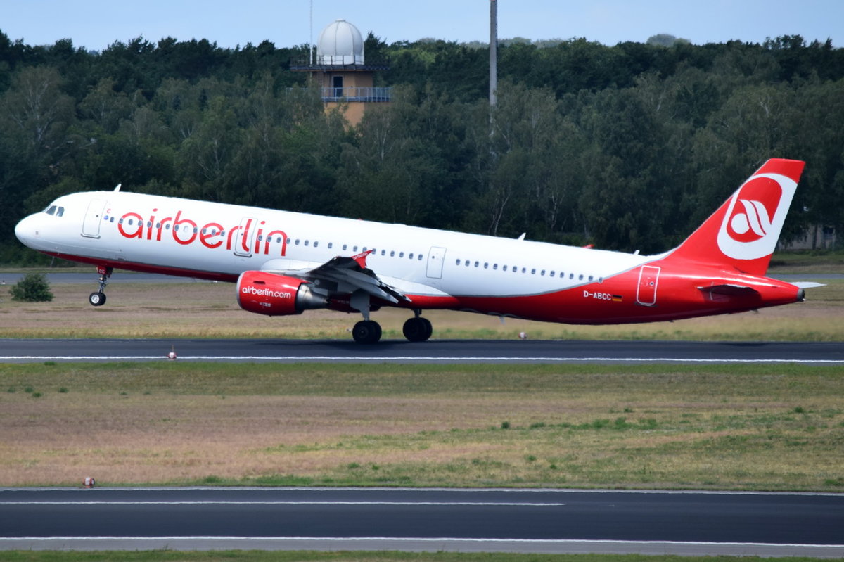 D-ABCC Air Berlin Airbus A321-211 in Tegel beim Start am 07.07.2016