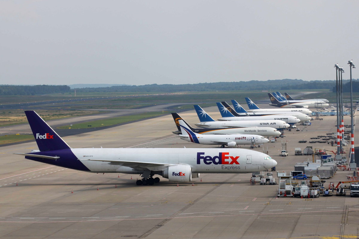 FedEx, N853FD, Boeing 777-FS2, CGN/EDDK, Köln-Bonn. Dahinter Swift Air EC-MIE, B737-4YO(SF). 24.07.2016
